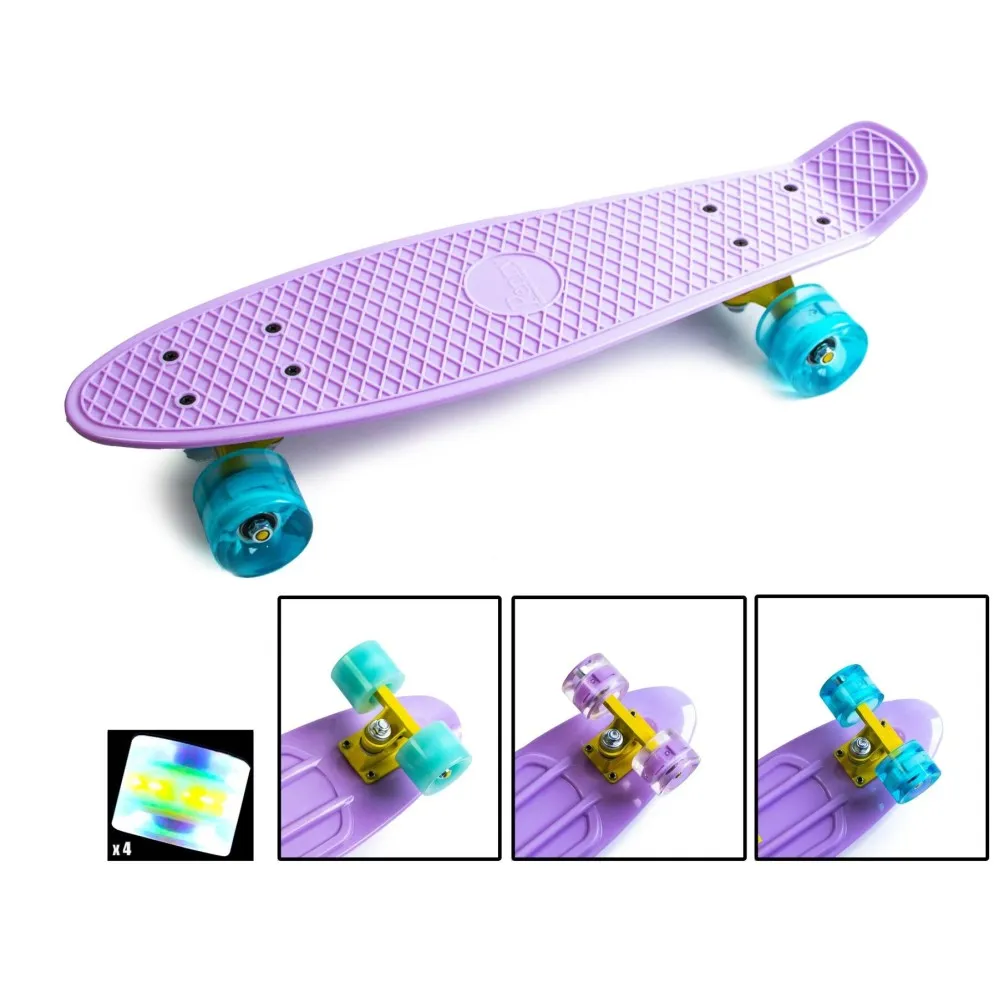 Zippy Board penny 22" Lilac - Лиловый 54 см пенни борд светятся колеса (Z41) - отличный вариант для веселого времяпровождения! Если у друзей есть тоже пенни борд, то вместе будет намного веселее! Красивый дизайн, приятный цвет! Удобно на нем кататься засчет удобной доски и колес! Сделано из качественного материала! Удобно что подходит на любой возраст. Можно кататься практически на любой поверхности! Парки, скейтпарки, дворы, улицы города.