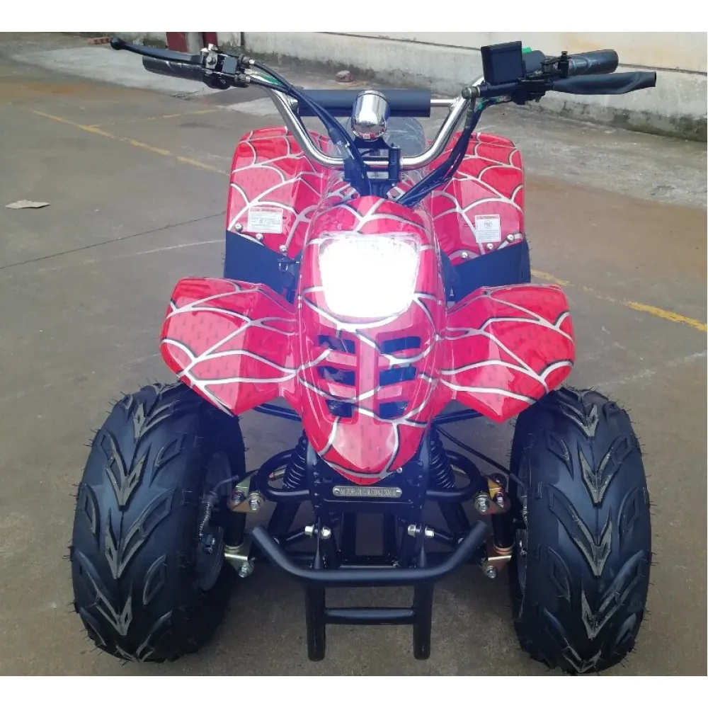 Дизайн квадроцикла таков, что сразу привлекает к себе внимание. Обтекаемые формы и яркая покраска делают своё дело. А узор стилизованный под паутину, напоминает о костюме Человека-паука – это не оставит равнодушным вашего ребёнка.