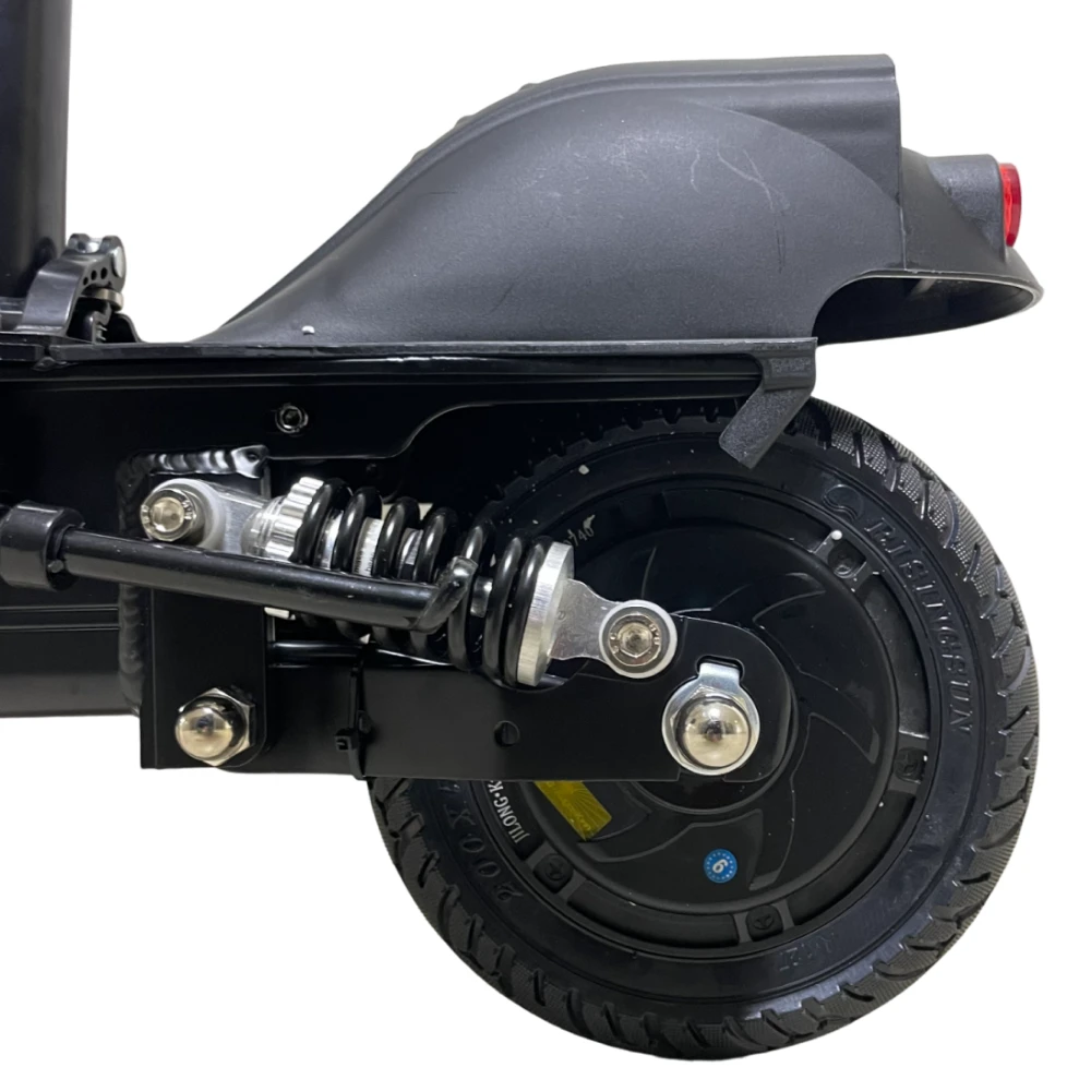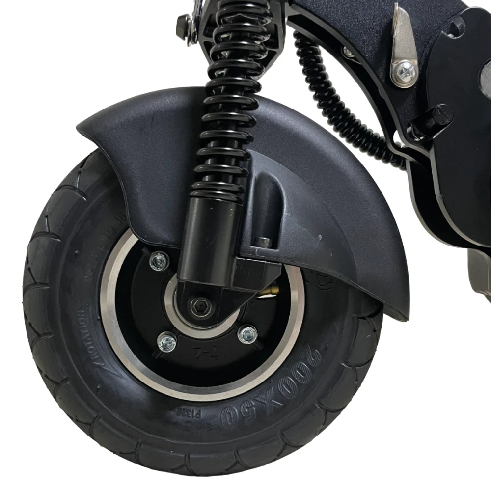 У Kugoo M2 350W восьмидюймовые колеса и широкие шины, которые способны преодолевать небольшие препятствия, кочки, ухабы, ездить на любом грунте. У переднего колеса есть камера на 2.0 атм, что дает дополнительно амортизацию на неровной дороге. Заднее колесо продлевает службу самоката за счет того, что привод задний.