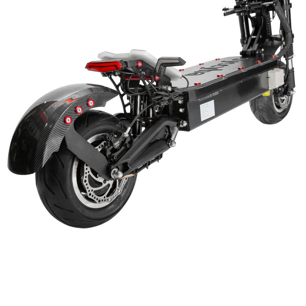 Гидравлические дисковые тормоза с рекуперацией эффективны на сухом и мокром (путь 4-5 м), воздушная подвеска спереди и сзади с регулировкой снижает вибрации; LED-фару, стопы и подсветку видно за 300 м. BMS предотвращает перегрев, переразряд и КЗ аккумулятора. Рекомендации: шлем, защита суставов, скорость ниже 60 км/ч в городе, проверка тормозов и шин раз в неделю.​