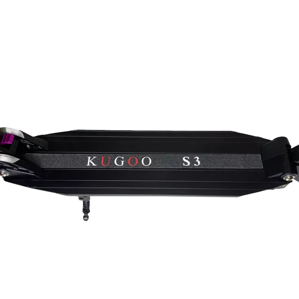 Kugoo S3 оснащен электродвигателем 350 Вт, мотор-колесо установлено впереди. Агрегат развивает максимальную скорость движения до 27 км/ч, имеет аккумулятор емкостью 6 А*ч. На одном заряде батареи проезжает около 26 км пути. Для увеличения дальности хода можно приобрести дополнительный аккумулятор, это экономит время. Пока один аккумулятор работает, второй можно установить на зарядку.