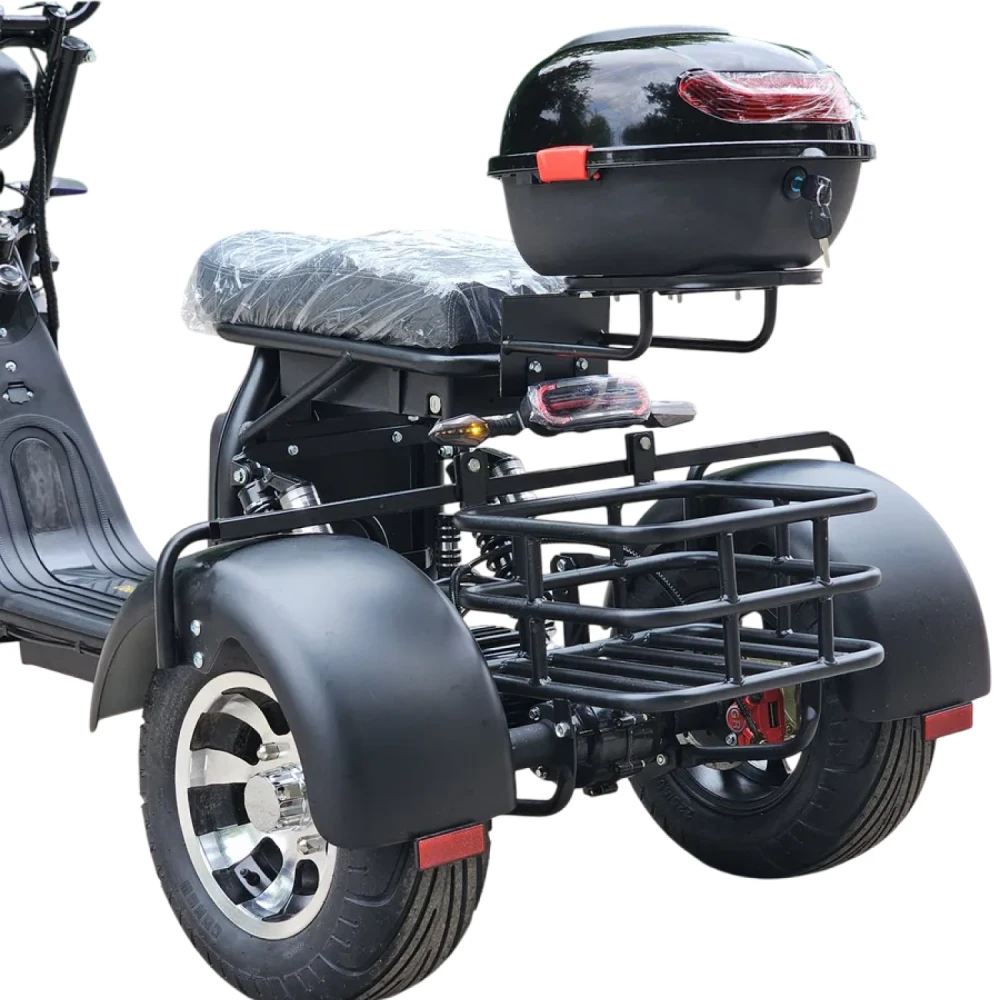 Электроскутер трехколесный CITYCOCO GT X11 TRIKE 2023 в черном цвете - это инновационное транспортное средство, которое обеспечит вам комфортное и стильное передвижение по городским улицам.