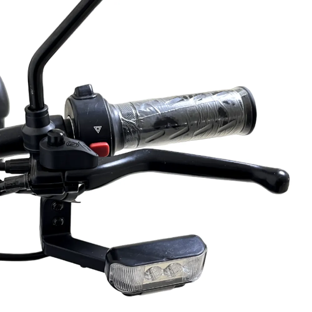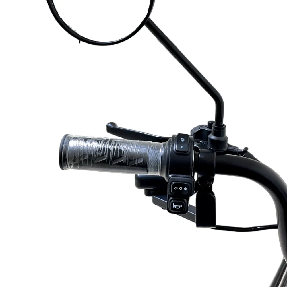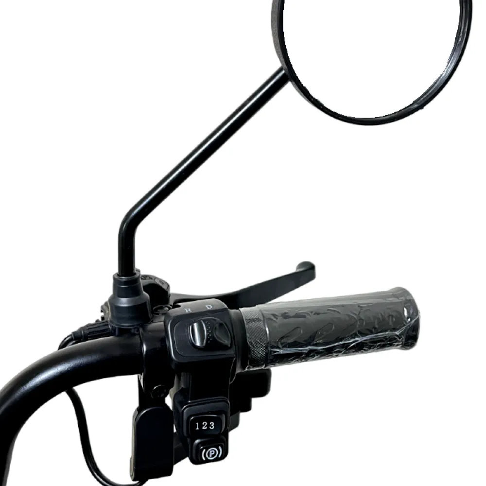 Широкое пассажирское сидение оснащено прочной спинкой и удобными подлокотниками для фиксации райдера при езде. Зеркала заднего вида открывают хороший панорамный обзор на проезжую часть, обеспечивая безопасность пользователя. Оригинальная тормозная система работает безукоризненно – девайс останавливается быстро в любой ситуации.