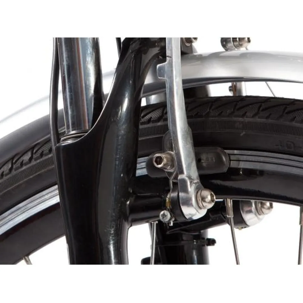 Eltreco Grand 700 C достаточно маневренный, диаметр колес 28 дюймов, качественная эластичная резина покрышек улучшает сцепление с дорожным покрытием. На не ровной дороге вибрацию сглаживает амортизированные сидение и передняя вилка, ободная тормозная система позволяет чувствовать себя уверенным при совершении маневров.