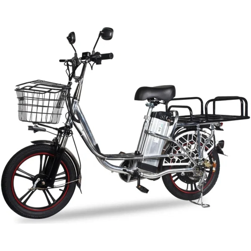 Седло велосипеда мягкое, сделано из прочного материала. На таком седле даже самые дальние поездки покажутся ничем. Приятный бонус к покупке – это комплектация Minako V12 Lux. Кроме дополнительной батареи он, в отличие от конкурентов, укомплектован зеркалами заднего вида, крыльями, подножкой, корзинкой и багажником.