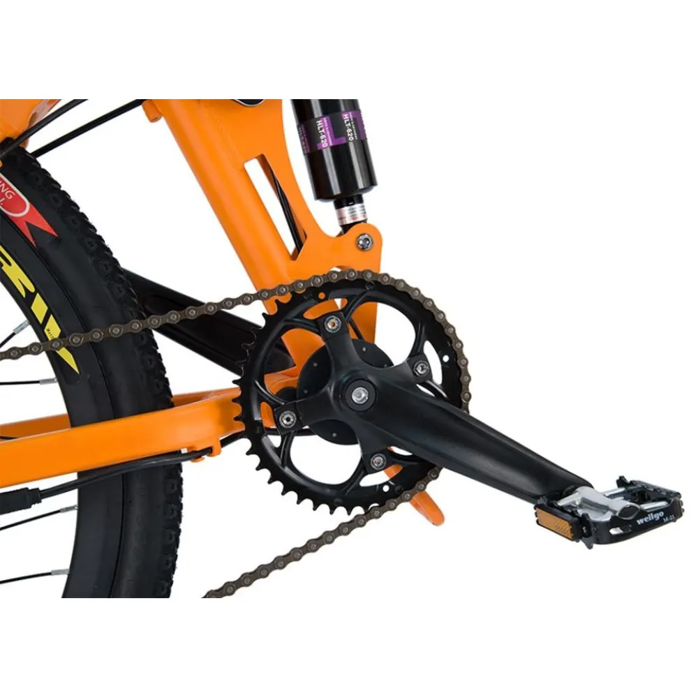 Электровелосипед Volteco Intro имеет достаточно мощный двигатель 500 Вт, благодаря этому транспортное средство может развивать максимальную скорость 45 км/ч, без усилий со стороны водителя. Есть возможность переключать скорости с помощью переключателя Shimano, количество скоростей 7. Дисковые тормоза спереди и сзади позволяют регулировать движение, маневрируя при необходимости. Движение по неровному дорожному покрытию смягчается двухподвесной амортизацией. Диаметр колес 26 дюймов, они идут с эластичными протекторными покрышками.