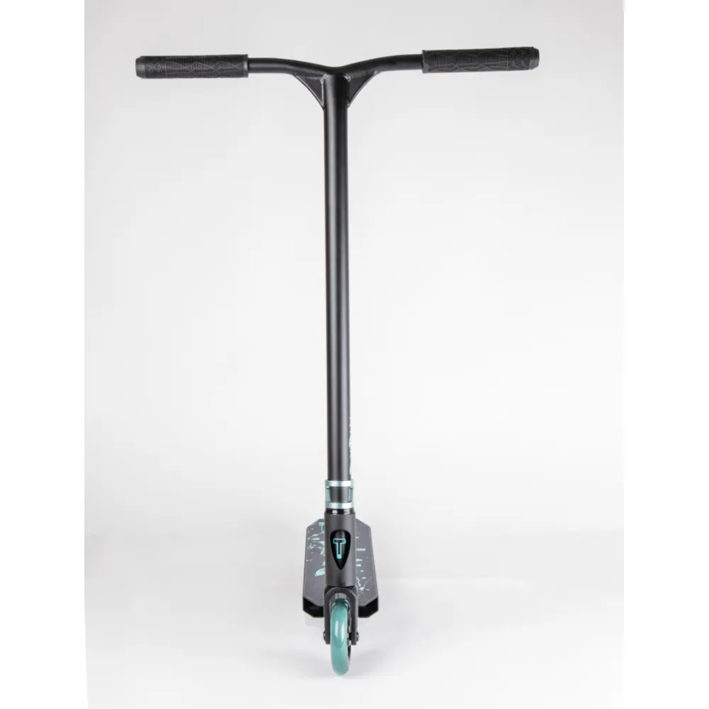 Модель совершенствована. Подтверждением тому являются особые параметры деки, которая изготовлена с применением прочного и надежного алюминия 6061 прошедшего теплообработку Т6. Наличие пластикового тормоза с гидравлической вставкой в сочетании с профессионализмом райдера гарантируют его безопасность и качественное выполнению трюков.