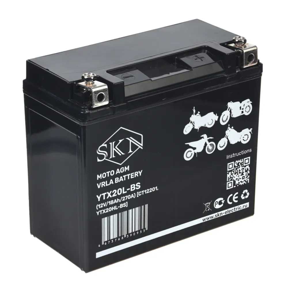 Аккумулятор стартерный для мототехники SKN YTX20L-BS (12V/18Ah/270A) [CT 12201, YTX20HL-BS]