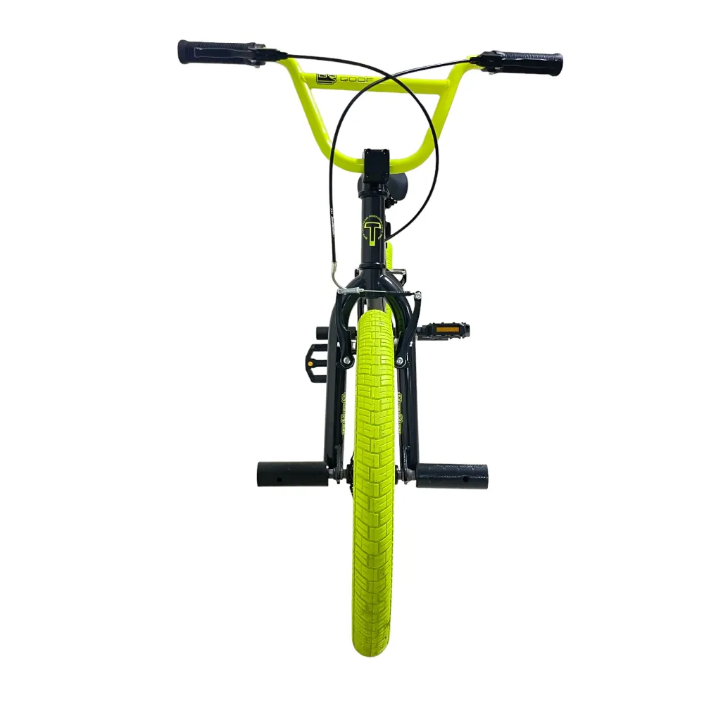 Велосипед BMX Tech Team GOOF 2024 в черном цвете с зеленоватыми рулем и покрышками – это сочетание стиля и надежности. С максимальной нагрузкой до 110 кг и 20-дюймовыми колесами, этот велосипед легко справится с любыми испытаниями. Ободные тормоза V-типа из алюминия спереди и сзади обеспечат безопасность и контроль. Стальная вилка и рама размером 18,7 дюйма делают этот велосипед прочным и готовым к любым трюкам. Пеги на передних и задних колесах и трещотка на 16 зубьев добавляют функциональности и делают его идеальным для экстремальных видов спорта.