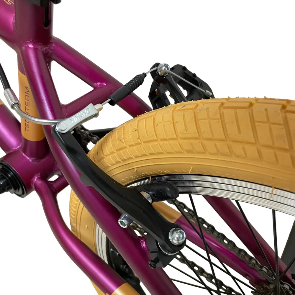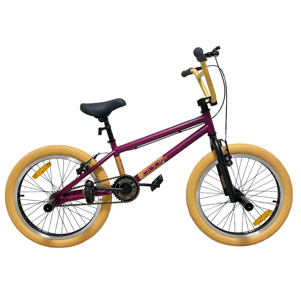 Познакомьтесь с велосипедом BMX Tech Team GOOF 2024 в бордовом цвете, который не оставит вас равнодушным. Бежевый руль и покрышки придают ему уникальный и яркий внешний вид. Велосипед выдерживает нагрузку до 110 кг и оснащен 20-дюймовыми колесами, что делает его идеальным для трюков и активного катания. Ободные тормоза V-типа из алюминия спереди и сзади обеспечат безопасность на дороге. Стальная вилка и рама размером 18,7 дюйма гарантируют надежность и долговечность. Пеги на обоих колесах и трещотка на 16 зубьев делают этот велосипед отличным выбором для любителей экстремальных видов спорта.