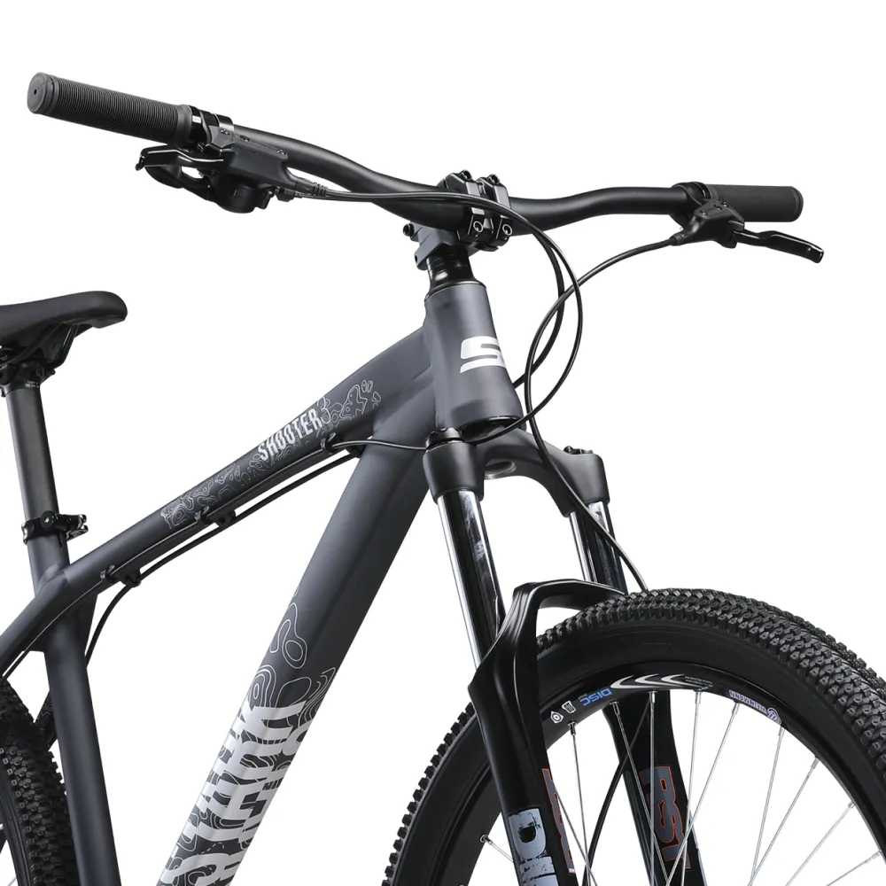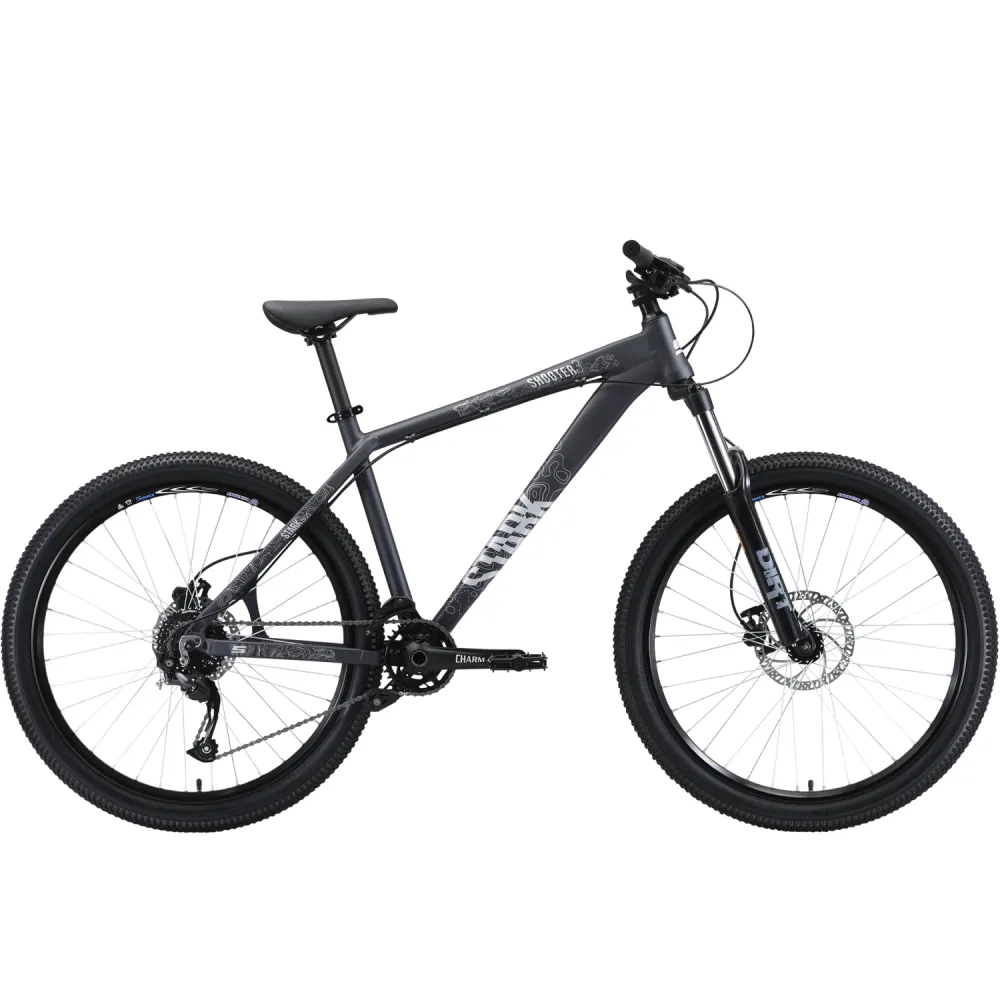 Велосипед Dirt Stark Shooter 3 – это современная модель, которая подойдет для любителей. Она отличается удобством управления, комфортом езды. Ее отличает надежная конструкция и отличные эксплуатационные характеристики. Велосипед укомплектован непрофессиональным оборудованием. Безопасность во течение поездки обеспечивается задним тормозом Tektro HD-M285 и укомплектован гидравлическим тормозом. Они отличаются быстрым откликом, тормозят легко и останавливаться езду ровно в тот момент, когда это требуется велосипедисту. Велосипед оснащен переключателем скоростей RD-M2000.  Вилка от stark, выполнена из сплава алюминия, что делает ее эффективный и легкой. Скорость и маневренность достигается за счет усиленной, легкой, алюминиевой рамы. Модель отличается массивными колесами, диаметром 26 см с мощным профилем. Они защищают от продольных ударов и обеспечивают хорошую сцепку с дорожным покрытием. Велосипеды stark отличаются хорошим накатом.  Велосипеды bmx от производителя-это отличное решение, если вы только начинаете осваивать горную езду. Купить горный велосипед Stark Shooter 3 можно в нашем интернет-магазине с доставкой.